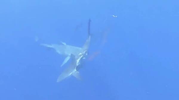 勒布拉托博士表示,这头鲨鱼足足撑了大约20分钟才逐渐死去。他补充说:“鲨鱼吃鲨鱼,这是很常见的,但超级难拍摄和记录。”