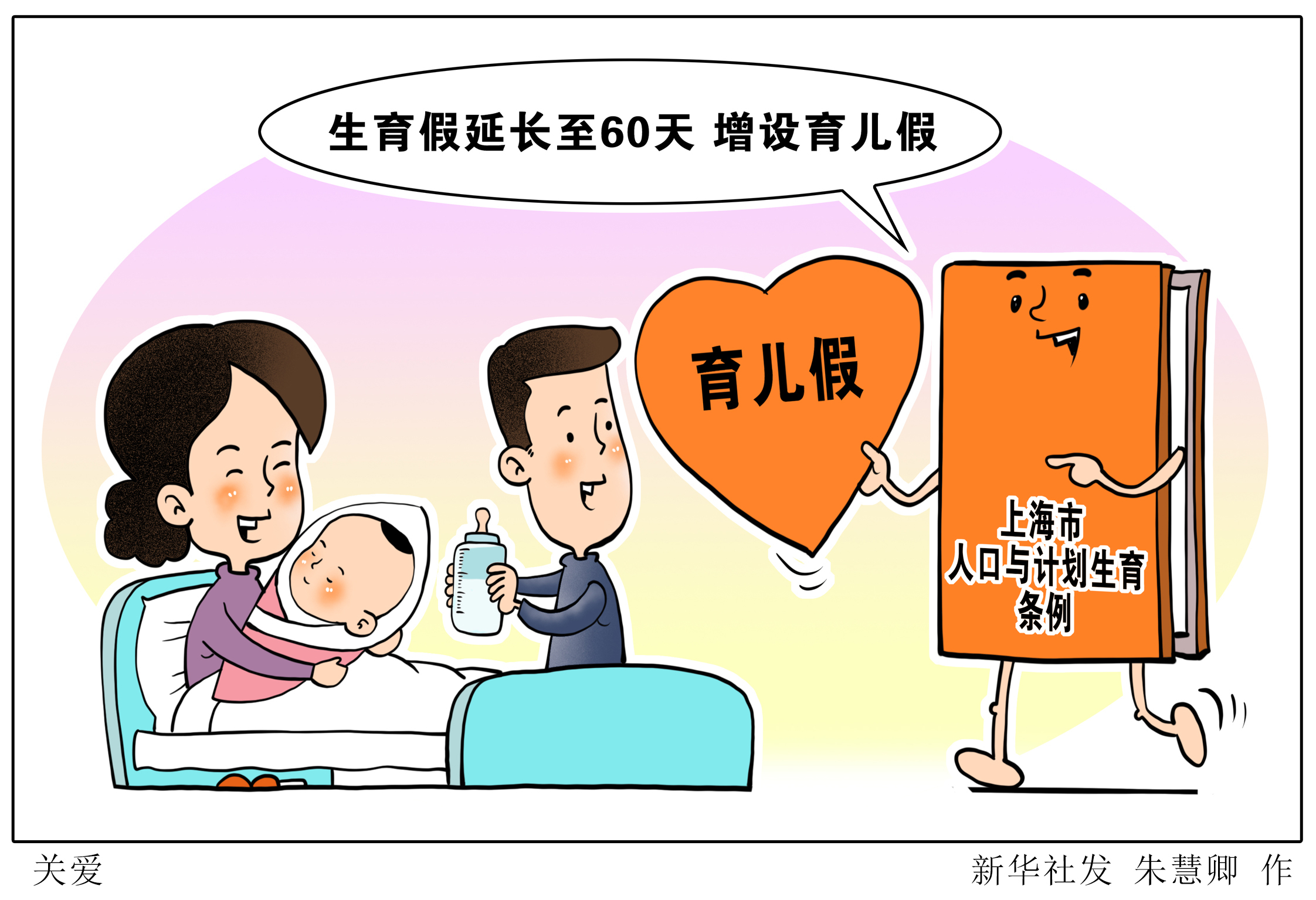 上海市十五届人大常委会第三十七次会议11月25日表决通过关于修改《上海市人口与计划生育条例》的决定,对符合法律法规规定生育的夫妻,女方除享受国家规定的产假外,还可以再享受生育假60天;夫妻在其子女年满三周岁之前,双方每年可以享受育儿假各5天。育儿假期间的工资,按照本人正常出勤应得的工资发给。