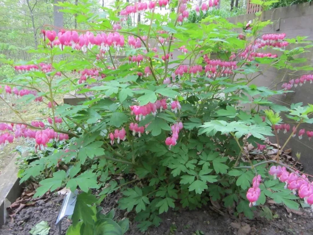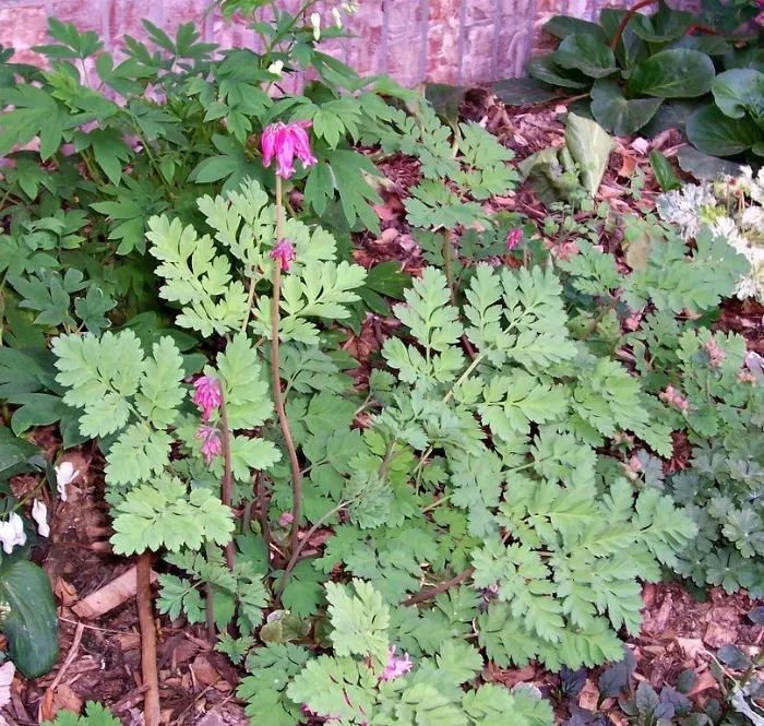 荷包牡丹是一种非常有风格的块茎花卉,它的叶子非常像蕨类植物,而花朵则有点像热带花,荷包牡丹非常经得起时间的考验。在冬天,最低的温度在零下二三十度,它都可以存活,不过地面上的枝叶就会枯萎,来年春暖后才能重新长出来。