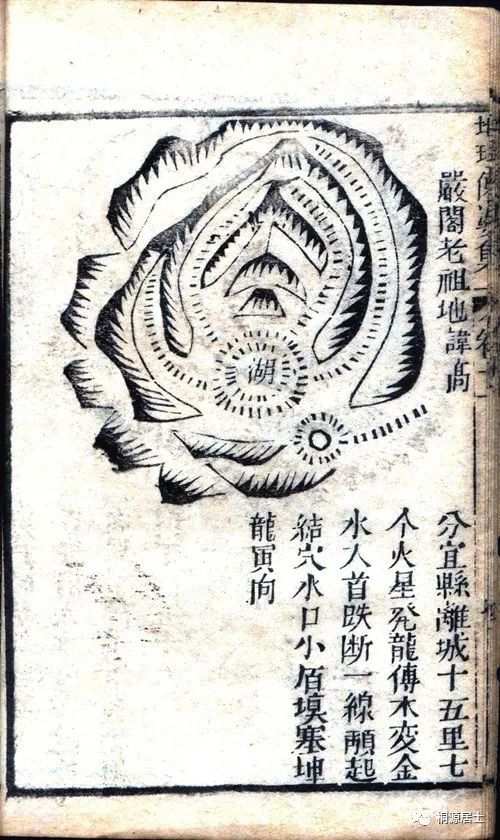 《地理仙婆集》绘图虽只有三五节,但基本保持和真实反映了该地的地貌特征。穴前湖中有石,却非坤龙寅向,此与族谱记载及实地测量不符。言分宜“七个火星发龙”结穴的严嵩祖地,除此亦别无大结。