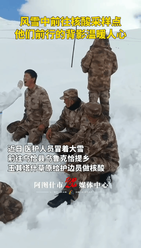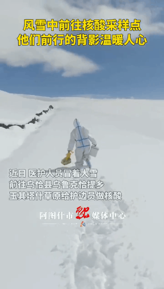 前段时间,新疆一位医护人员,提着医药箱,走在风雪中。