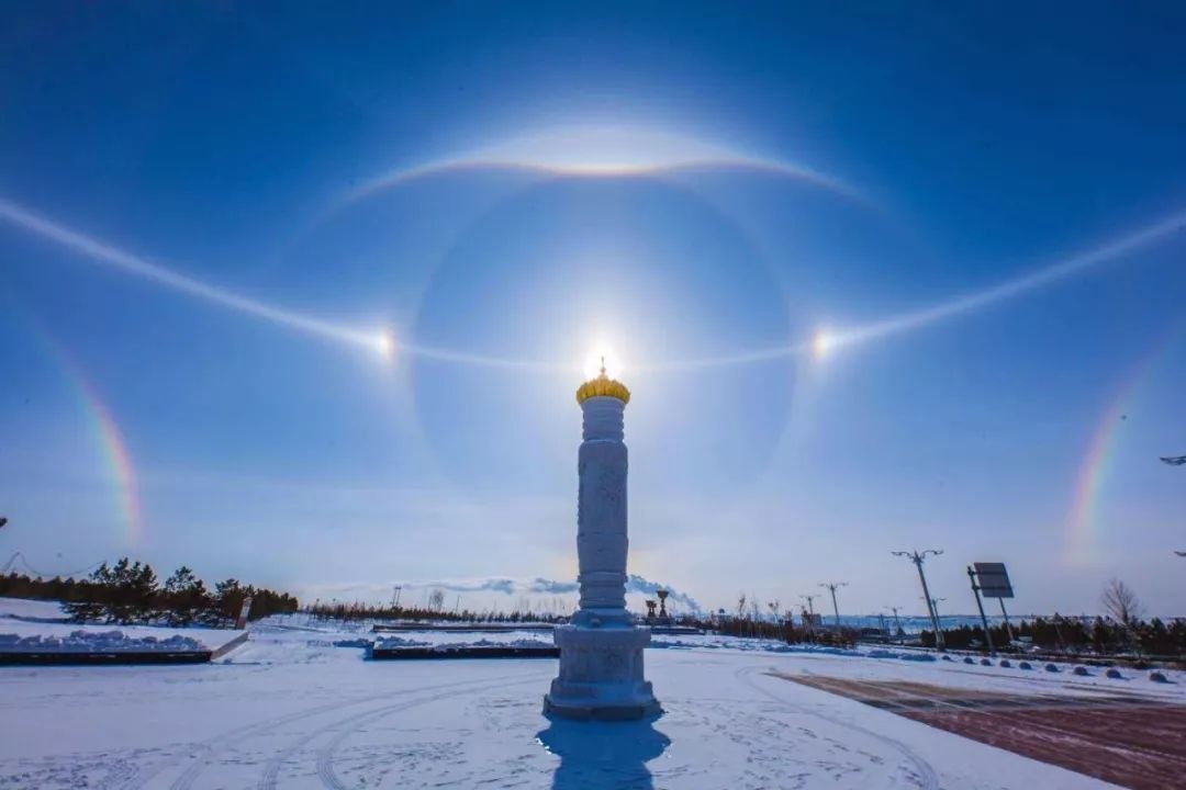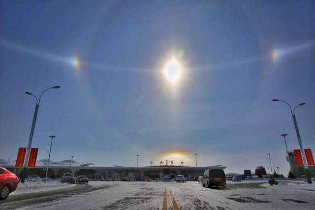 据悉,今天海拉尔上空出现的幻日,其实也是大家熟知的“日晕”的一种特殊形式。而内蒙古境内也不是第一次出现幻日现象,早在2013年11月1日9时10分许,内蒙古赤峰就同时出现过“五个太阳”的幻日现象。