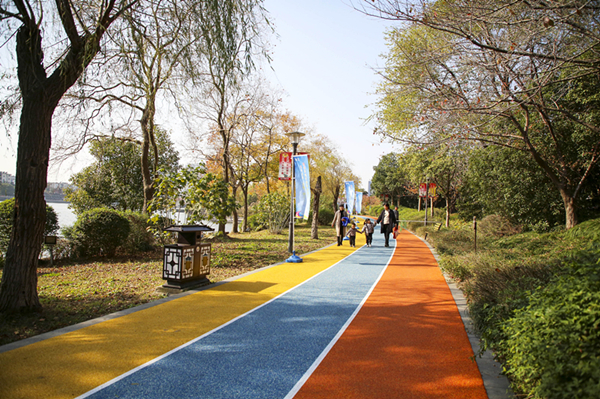“政府给我们修的步道很好。”当天,跑步爱好者丁月华早早和跑友们赶到现场,她说,“以前晚饭后经常沿着环城河健身步道散散步,现在新修了步道,走上去更舒服了,对脚也有保护作用,在这种绿色环境里面跑步心情都更好了!”