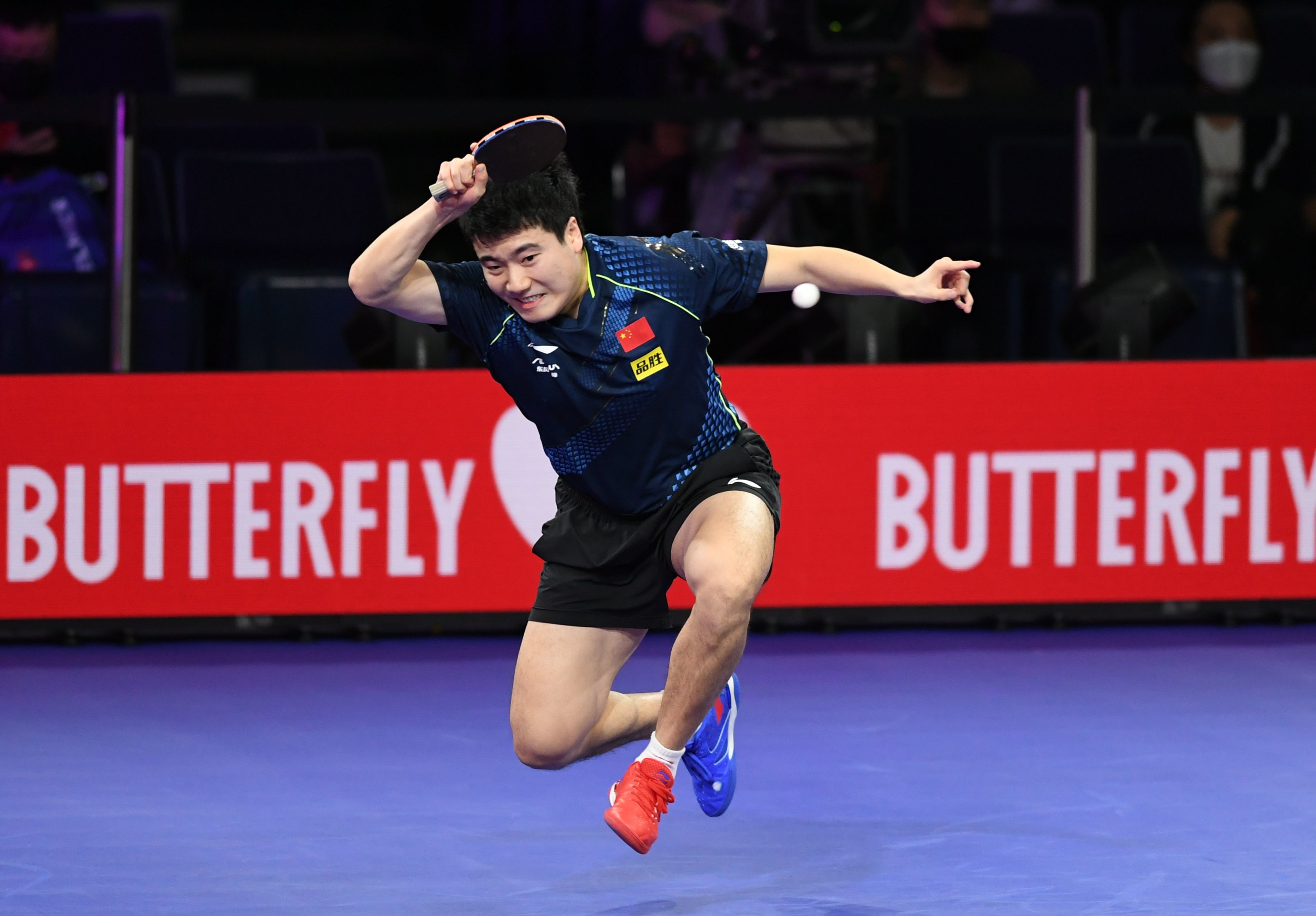 11月25日,梁靖崑在比赛中回球。新华社记者 吴晓凌 摄