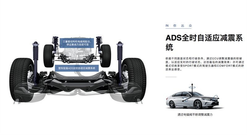 英仕派搭载同级独有的ADS全时自适应减震系统,根据路面和车身姿态智能动态调整减震力,最高可实现0.002秒调整一次减震阻尼,为车辆提供魔毯般的驾乘质感。得益于发动机和油门踏板、制动踏板的重新调校,英仕派的动力响应更加积极,底盘质感更出色。此外,通过对发动机油底壳的改善和排气管道的优化,英仕派在NVH方面有了显著提升,为用户营造静谧私享空间。
