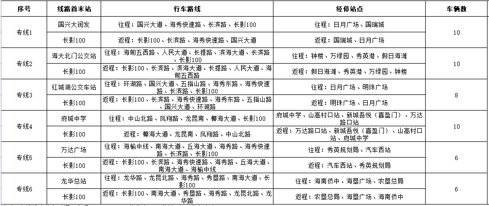 (二)11月28日、12月3日至5日市区6个公交专线站点与发车时间。
