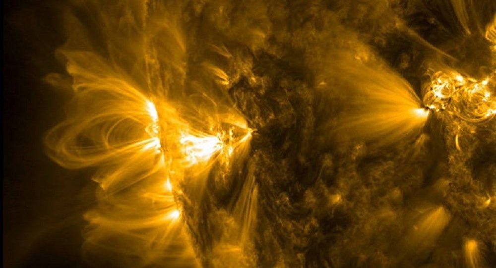这些太阳黑子通常是成群出现在太阳的低纬度地区,由于它拥有异常强烈的磁场,导致该处的等离子体极其不稳定,往往会伴随剧烈的喷发,这就是我们所说的太阳耀斑爆发现象。太阳耀斑爆发会高速向宇宙空间喷发带电粒子流,这些集中喷发的带电粒子流会对地球的电磁通信造成极其负面的影响,甚至信号中断、设备损坏。