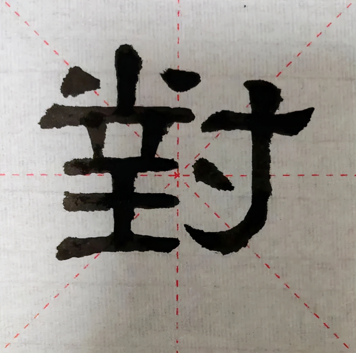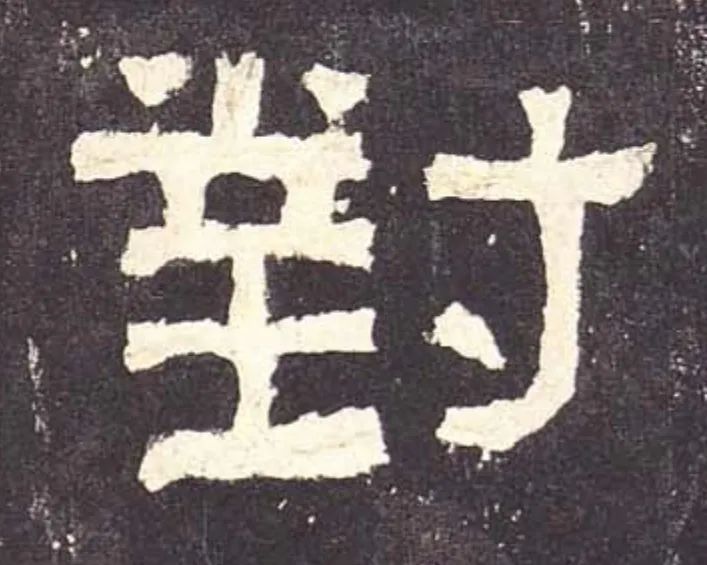 这个“对”字右边的义符“寸”,看起来形态有些奇怪。它的竖钩似乎是拆做两笔写成的。