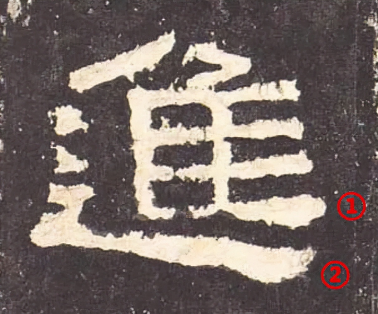 这样一分析,原碑作者似乎是打算以笔画①为主笔,尽管这种选择带有无奈的成分。但放在“进”字的整体结构中,这种选择很难说是明智的。