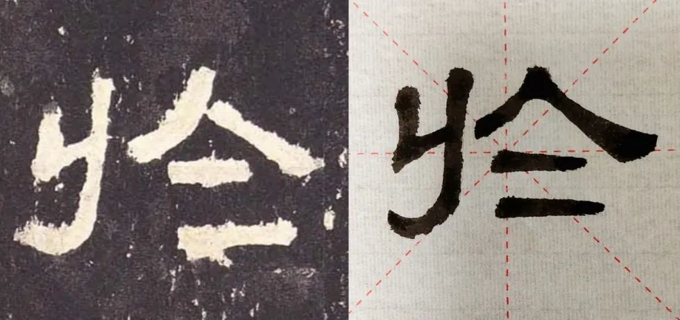 但我们照此临帖,会明显地感到气势不流畅,笔意不连贯。因此我还是觉得,这个字最好还是像下面这样临写:
