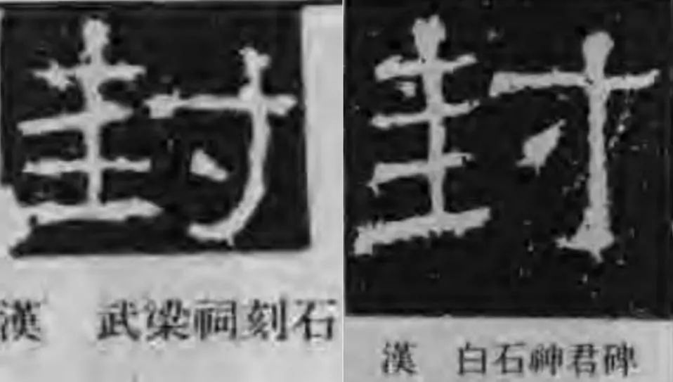 之所以做出这个推断,是因为我发现汉碑中凡写“寸”这个义符,竖钩往往带有比较夸张的装饰性的起笔动作,比如下面这两个“封”字: