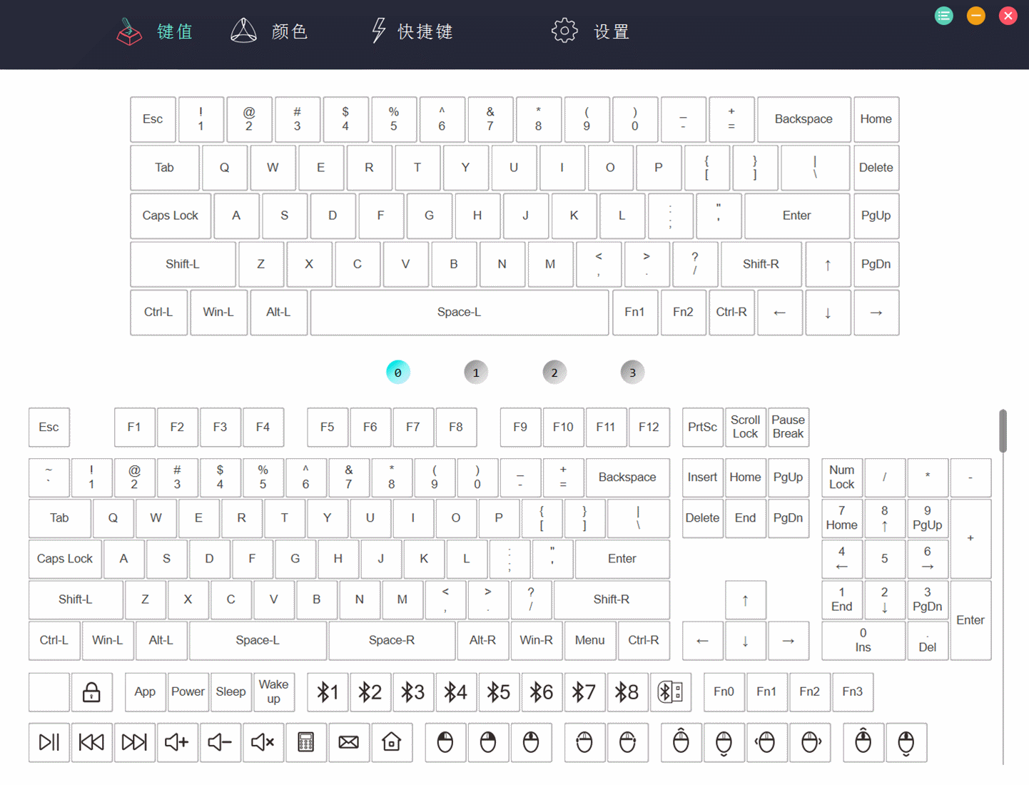 当然,我们也可以利用智能配置软件KBTOOLS进行更详细直观的调节。这里不仅有背光颜色、显示方式的调节,还有键位的调节,快捷键的调节等等。虽然软件界面简单,但这很个性简约时尚。