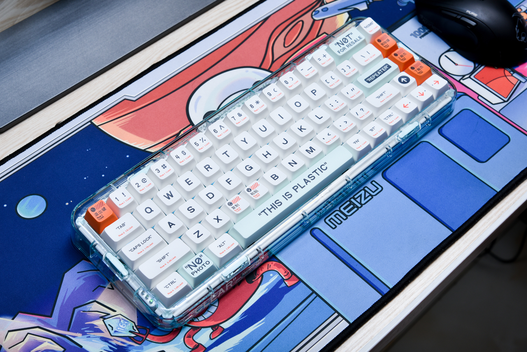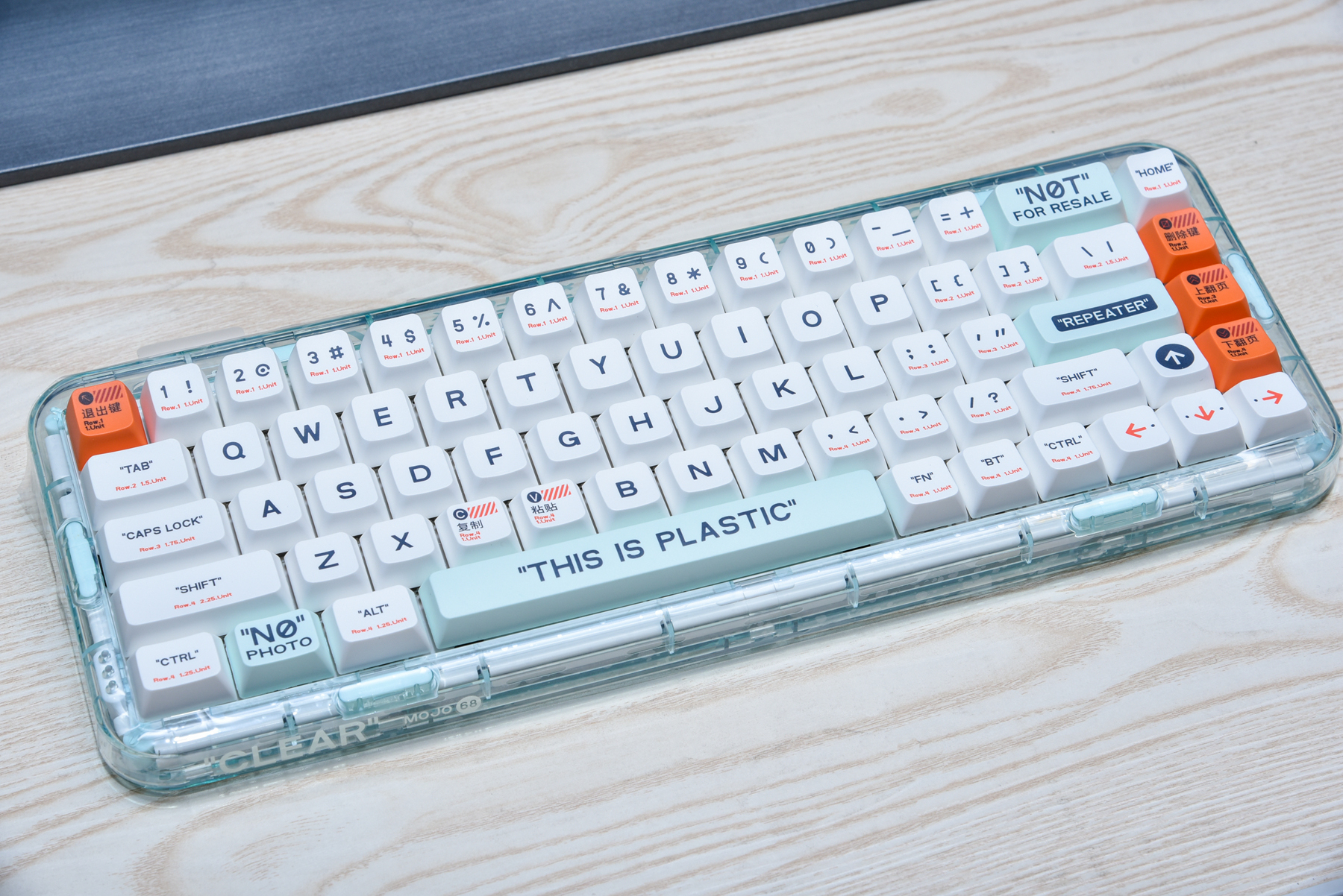 从未见过如此设计的机械键盘!MelGeek的MOJO68机械键盘不仅是是小巧,更重要的是外观设计很有特色!一改传统键盘的呆板设计,把功能的英文和中文标识,还有年轻人的情绪化语言都放在键盘上,给我的第一印象就是——好玩!有意思!