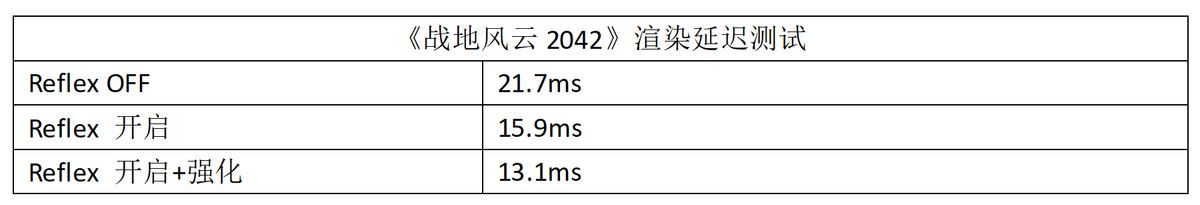 在没开启Reflex技术的时候,《战地风云2042》的渲染延迟为21.7ms,而开启Reflex强化挡之后,渲染延迟降低到13.1ms,降低渲染延迟的效果同样相当明显。在《战地风云2042》的战斗中,对射的胜负往往就在电光火石之间,延迟更低的一方显然更有优势。