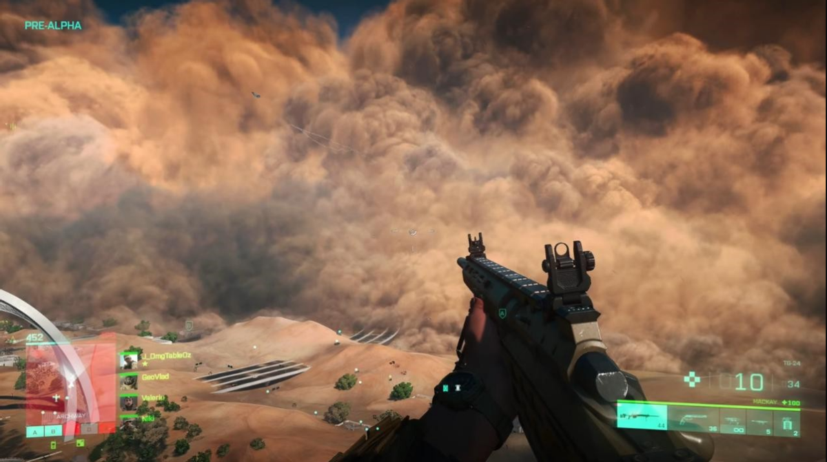为了容纳如此多的玩家以及让各种海陆空载具能够纵横驰骋,《战地风云2042》的战场相当的开阔。新加入的天气系统存在感很强,像随机出现的龙卷风、沙尘暴等恶劣天气也为作战增加了变数,算是一个比较有意思的改进。再加上寒霜引擎以及支持打造出的精良画面,共同营造出更宏伟又充满变数的战场。