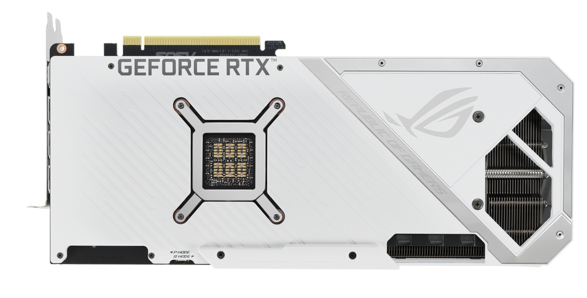 华硕ROG-STRIX-RTX3080-O10G-WHITE背面提供的是2个HDMI 2.1和3个DP 1.4a的视频输出接口组合,玩家各种显示设备的接驳需求都能轻松满足。