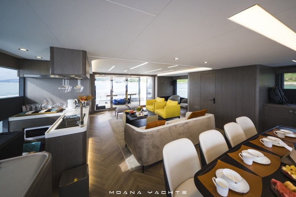 莫阿娜游艇专注于新时代高品质双体动力游艇设计与建造。全新第二代MOANA莫阿娜双体动力游艇CITI 55拥有凌厉动感的船身线条,从船艏到船艉一气呵成,长达16.38米船身,未来感游刃于先锋姿态中,视觉观感焕然一新。更高的干舷高度、更优化的船体线型、更开阔的沙龙舷窗、更大的飞桥休闲空间,一切都只为更从容地穿梭于城市丛林之中,海洋与城市本无边际。