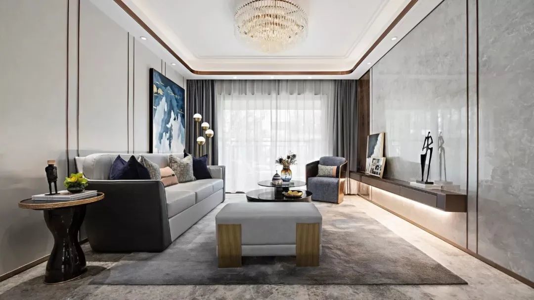 在这套115平米的房子中,整体以现代风的空间设计,加入典雅的材质与配色,再以轻奢风的细节装饰,整体端庄优雅的设计,让空间布置出一种华丽的档次与气质感。
