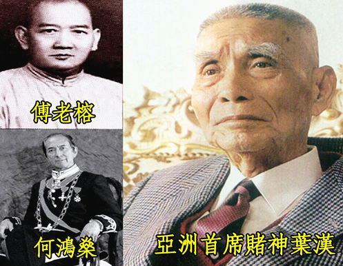 傅老榕的成功,上有两大靠山,下有一帮兄弟,其中以“赌场鬼王”叶汉和“澳门王”何贤为左右护法。