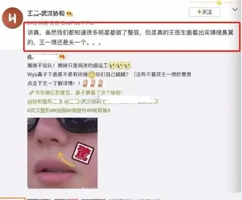 此外,医生指出王一博的鼻子动过,鼻子有明显动过的痕迹,鼻翼也多半做过缩小,但动过之后就会有后遗症,在做表情时会很僵硬,鼻子周围的肌肉过于紧张也会增加法令纹。