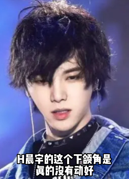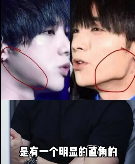 早期他的脸是又短又方的,现在成了V字脸。以前他的下颌骨是有明显直角的,现在没有了,但整容医生直言不讳说他的下颌角是真的没有动好,加长下巴后,脸从侧面看过去就是2D的脸。
