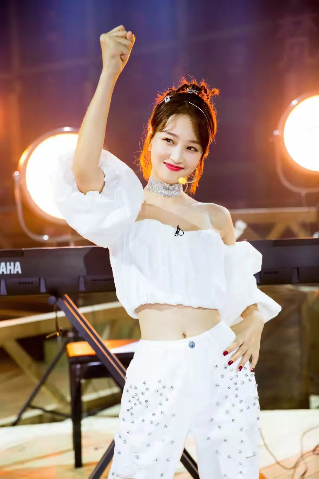 这张表情太大了可能参考价值不那么高,但还是可以看出来嘴巴那块有点奇怪,牙龈露出来的比较多,翘下巴让她嘴巴好似“瘪了进去”。我们再看看另一张,可能更清楚。