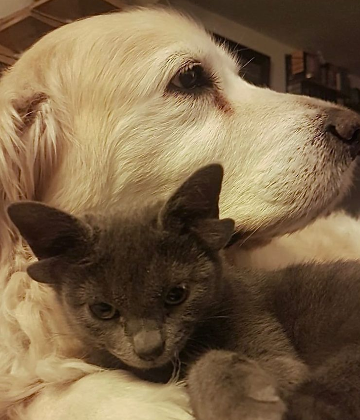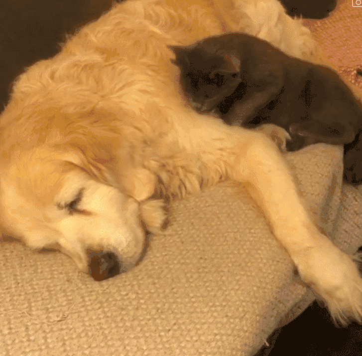 金毛对待这个小家伙非常细心,每次都小心翼翼不要压到她。