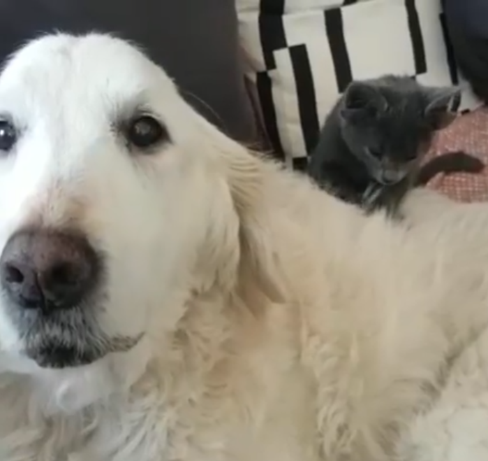 而Midas则赋予了全部的信任,甚至经常跑到狗狗的后背上慢慢踩奶。