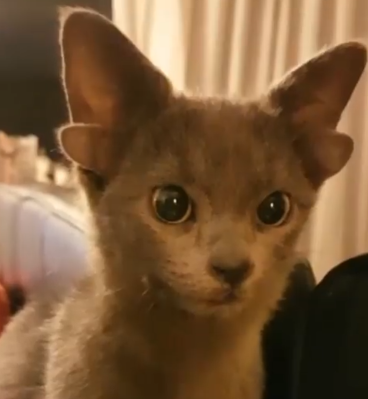 “四耳猫是因为一种罕见隐性基因,如果父母都携带了这一基因,那么它们的孩子就有一定几率,会成为四只耳。”