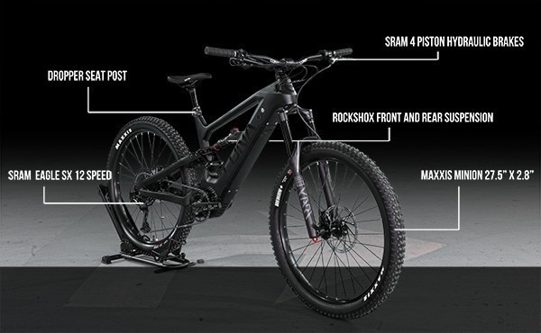 自行车搭载Bafang M600中置电机,在最大功率下,电动机的输出功率可达2500瓦,车主完全不需要踩踏也能够行驶。