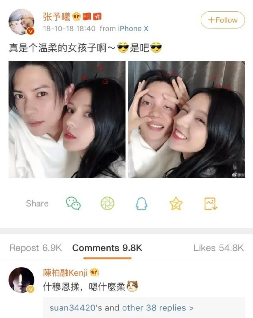 张予曦小透明时期倒是还公开过恋情,和陈柏融那两年的恋爱,到现在都还是很多人的意难平。