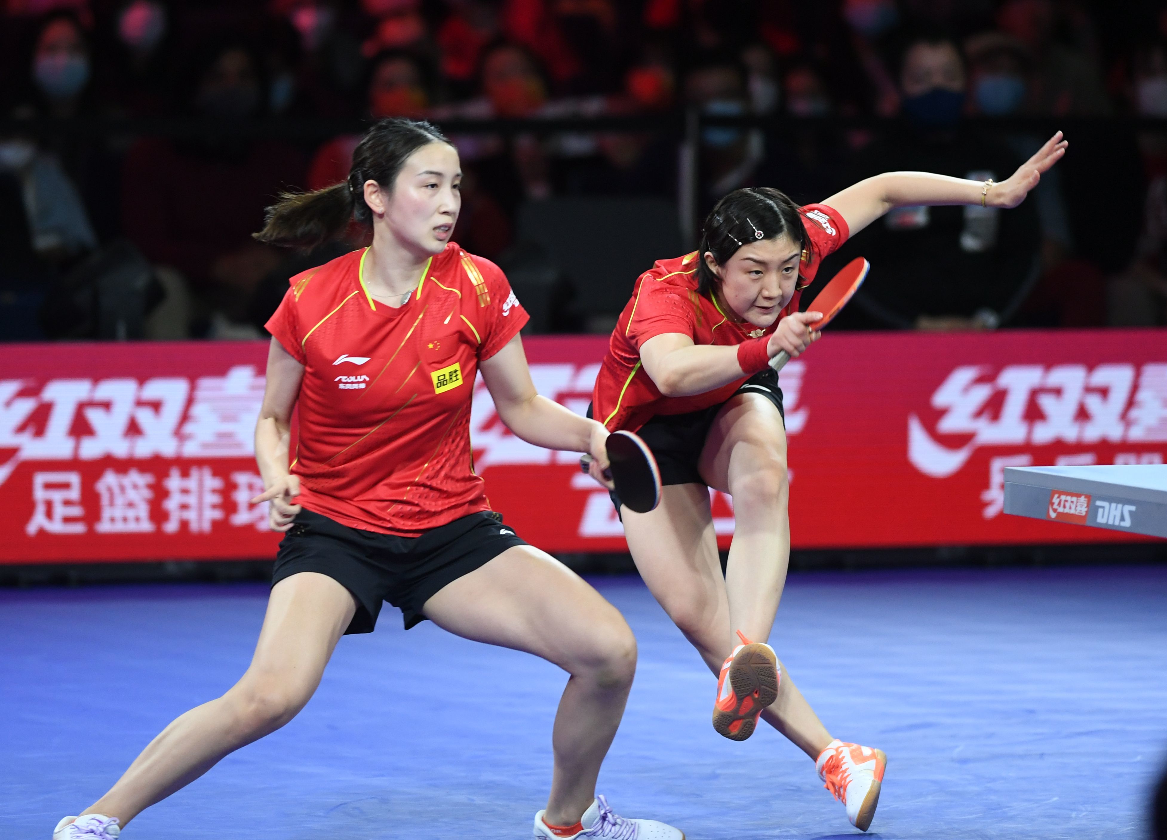 11月28日,中国组合陈梦(右)/钱天一在比赛中。