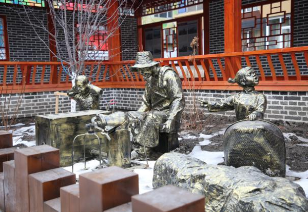 11月29日,站在田家大院前,中国吉林网注意到,干净整洁的围墙院落,找不到一丝曾破旧老化、乱搭乱建的痕迹。被改造一新的楼宇环境,仿北京颐和园回廊的建筑风格设计,融合着老长春的人文特色;具有关东风情的大院门、老长春手艺人的铜塑雕像等景观、台历造型的景观小品,上面的图文展示的是不同时期的田家大院,向人们讲述了田家大院百年的发展历程;古装的大戏台完美诠释了关东民俗文化;在田家大院标志性的断墙上,镶刻着1865年老长春的地图,可以清晰地看到,老长春三横一纵鱼骨状的城市布局……这里,展现着田家大院原始风貌和长春老街历史风貌。