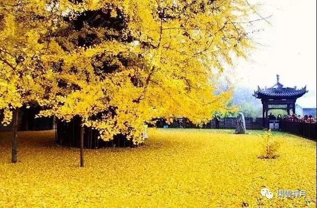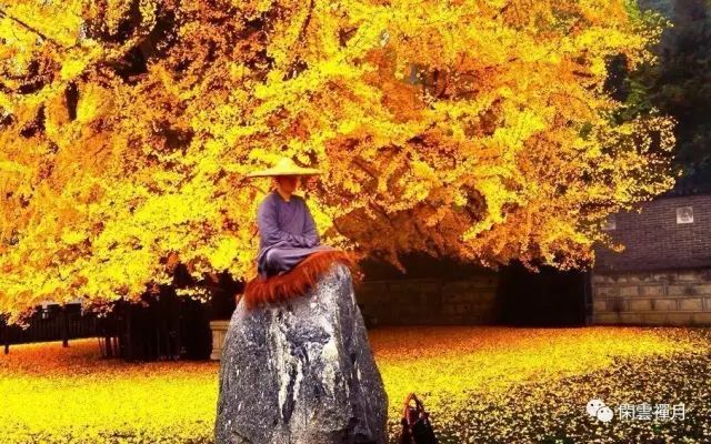 于是想念起我的家乡,西安市长安区终南山古观音禅寺中的千年老银杏,那是整个西安乃至全国都极为出名的网红一棵银杏,最经典出名场面一是满树金黄辉映满地金黄,二是蟠螭虬枝没有一片叶子的一株参天大树,树下铺满金灿灿的落叶,画面极为肃静而又震撼。往年霜降后成千上万的人潮涌进寺院看树。古观音禅寺自贞观初年起就有规模,千年来虽经波折,但到底还是香火不断。这样的寺庙在终南山中尚有不少,但只有观音禅寺它因树成名。在如今信息发达的时代,天南地北的人们,从网上获悉世上还有这般美若禅境的景致,宁愿跨越千里奔赴,只为亲眼目睹这样的观音禅寺银杏落叶的盛况。不知别人如何,我是心怀敬畏的来观赏这一棵银杏树的。古刹千年,古树千年,沐浴着终南山千年的风雨霜雪,凝聚了中国龙脊秦岭山之灵气,庙之禅静修为。寺院之古朴,南山风冽冽,映入眼帘的光芒令碧蓝的天仿佛也染上了金秋之色。我无法文学词汇来形容那种直入心灵的圣洁的明亮光采,那是一种恍如聚集了四季所有的光华,全世界所有的金黄色泽,熣灿夺目在同一时刻喷薄而出的壮观美丽,被一棵古朴的千年银杏树体现得淋漓尽致。我心中关于灵山佛境与海外仙境所有的想象,还有那些与世隔绝的遥远神秘和唯美空灵,如今都真实的出现在我面前。由此可见唐朝是有银杏树的。