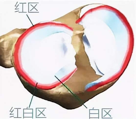 半月板是位于胫骨平台内外侧关节面上的纤维软骨,其生物力学的各向异性和不均一性可满足关节各种力学要求,如承重、维持膝关节协调、稳定运动及吸收震荡。半月板可分为三个区,即白区、红区及红白交界区,白区无血管分布,局部无血液供给,一旦损伤难以完成组织修复,因此,半月板损伤后修复难度较大,多数患者预后不佳。