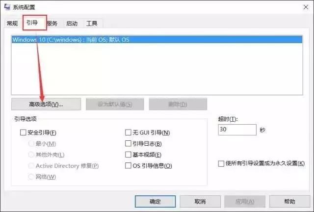 在“引导”下点击“高级选项”。
