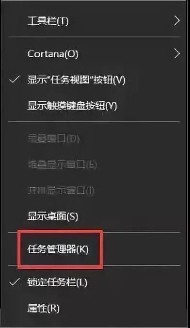 在任务栏的空白处击右键,选择“任务管理器”(或用Ctrl+Alt+Del组合键调出)。