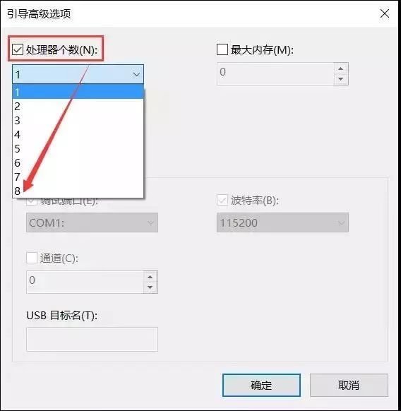 在“处理器个数”前打√,选出数值最大的,确定。