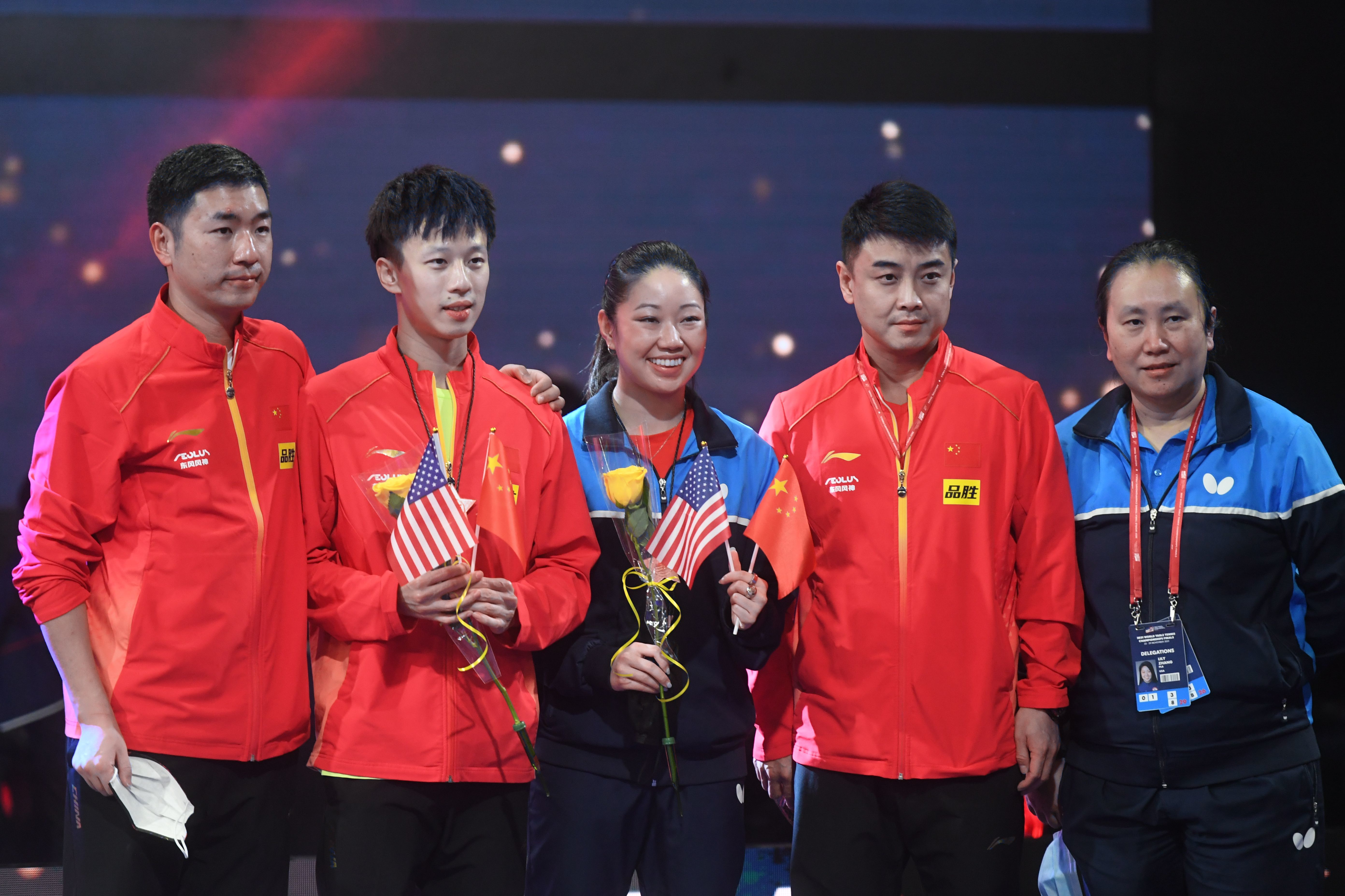 当日,2021世界乒乓球锦标赛混合双打比赛颁奖仪式在美国休斯敦举行。