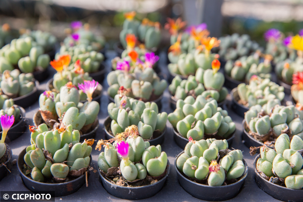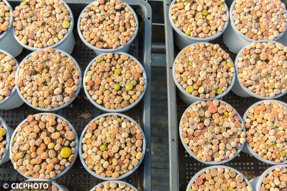 ↑2021年11月28日在江苏省如皋市长江镇范刘社区一处园艺基地拍摄的生石花。CICPHOTO/徐慧 摄