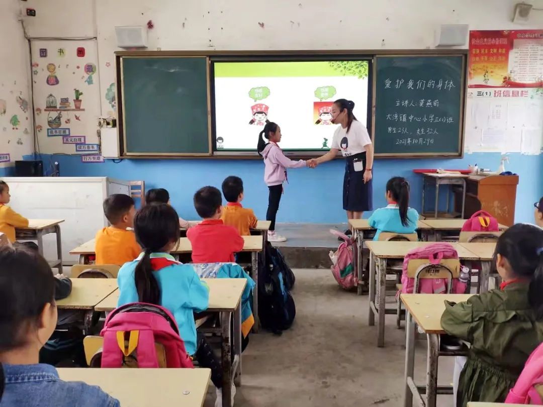 2021年10月15日,女童保护基金个人志愿者讲师仝茜走进四川省成都市都江堰市北街小学,为45名孩子讲授了1堂“爱护我们的身体”儿童防性侵课程,并发放儿童防性侵手册儿童版45本。