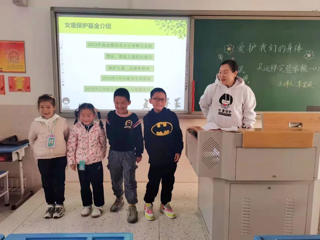 2021年10月26日、28日,女童保护基金个人志愿者讲师王秀贞走进山东省滨州市滨城区第四小学、实验学校南校区,为154名孩子讲授了3堂“爱护我们的身体”儿童防性侵课程,并发放儿童防性侵手册儿童版163本。