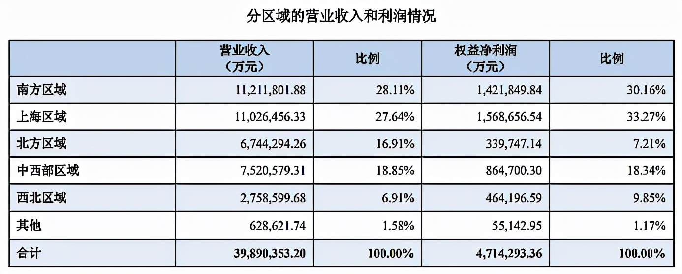 一方面,刘肖负责北方区域期间,成绩不佳。在2020年年报中,北方区域的权益净利润为33.97亿元,占比7.21%,是五大区域中“垫底”。