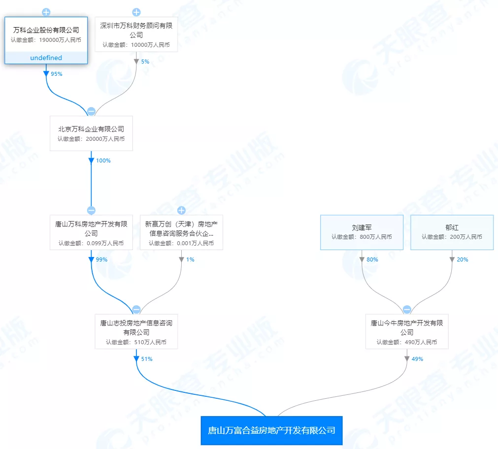▲唐山万富合益房地产开发有限公司股权结构,图片来自天眼查。