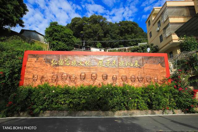 村子里的文化广场是必打卡的地方,白墙也同样被涂成了畲族文化,来到村里的游客这里也是必来打卡的,就在旁边还有一个畲族文化馆。目前为止,畲族人一共有四种姓,分别是钟,雷,蓝,盤,只要你是其中的一个姓就说明你是畲族的,来到这个村子就像是一家人一样,会受到当地人们热请招待。