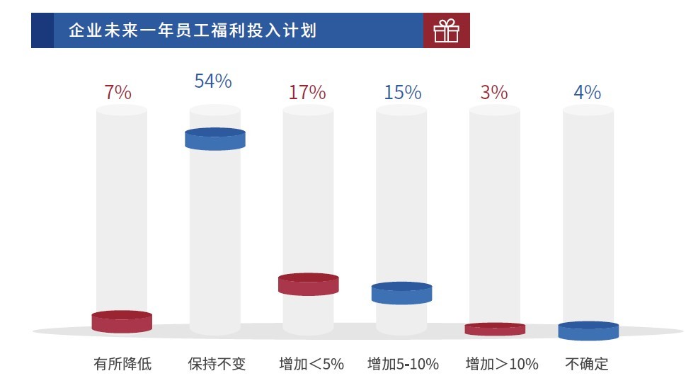 调研结果显示,企业为员工提供的福利类型多样化,以传统佳节类(89%)、健康管理类(72%)、员工关怀类(65%)、保险保障类(63%)福利为主;而且,健康管理类福利作为企业第二大员工福利,同时也是企业计划来年加大投入的第一大员工福利类型。员工福利类型全面涉及,且重心向健康管理类福利倾斜。
