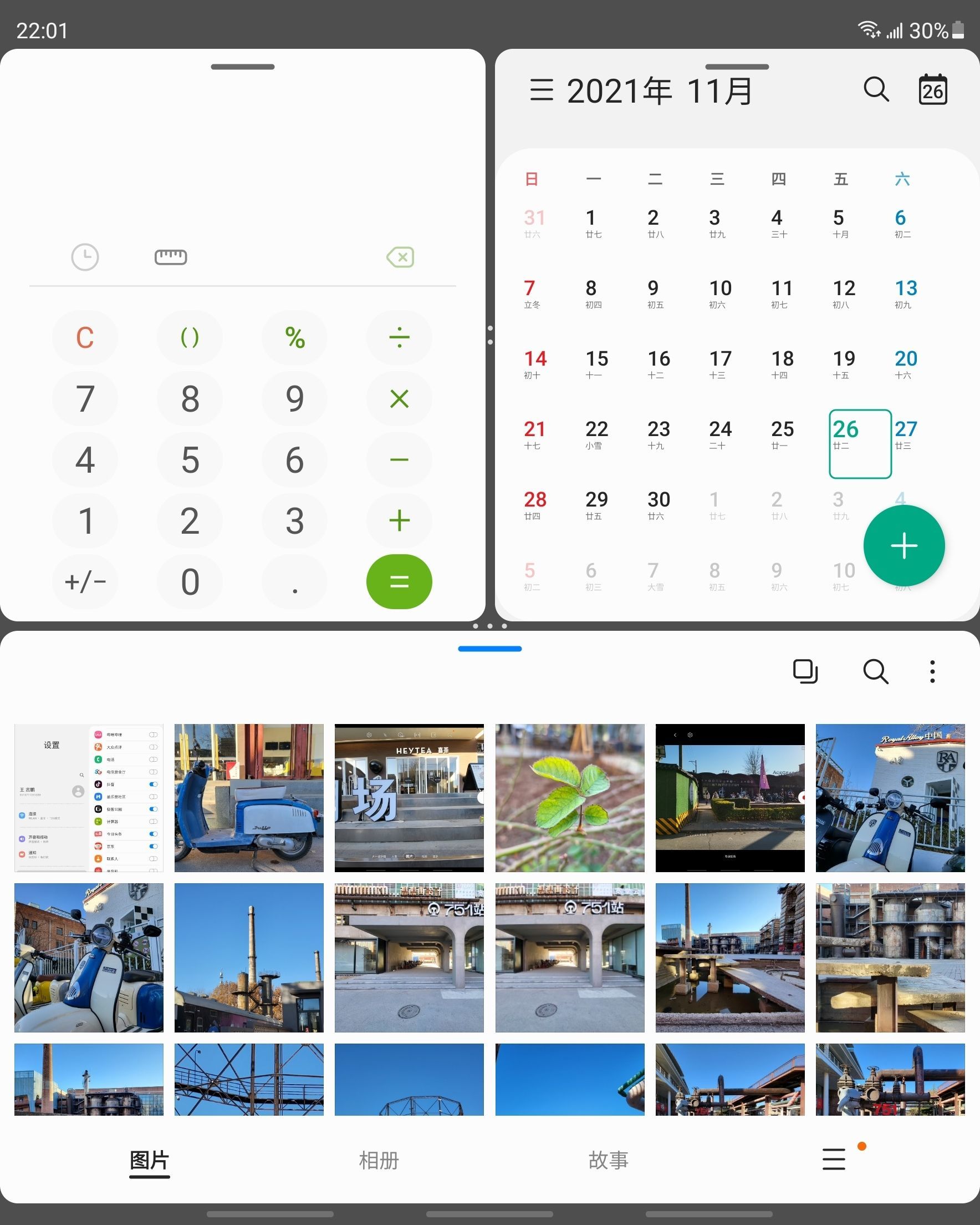 大屏的分屏体验当然也更好。它支持三应用分屏,具体操作方式比较简单,在侧边菜单栏中找到想要分屏的应用拖到桌面上即可。另外,三星也为 W22 5G 做了小窗模式,允许根据自己的实际使用需求自主调节窗口大小,在处理一些多任务时,还是很有用的。