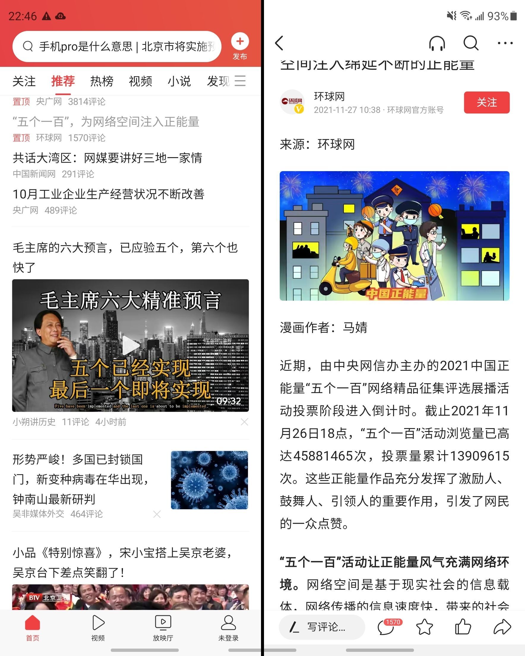 大屏的好处就在于,它能为不同显示需求提供更大且更好的显示和交互体验。三星 W22 支持应用程序分屏视图(类似华为平行视界),如上图所示,阅读新闻时,屏幕左右两侧能分别显示不同内容。需要说明的是,这项功能涉及到第三方应用适配,需要在设置中手动开启。