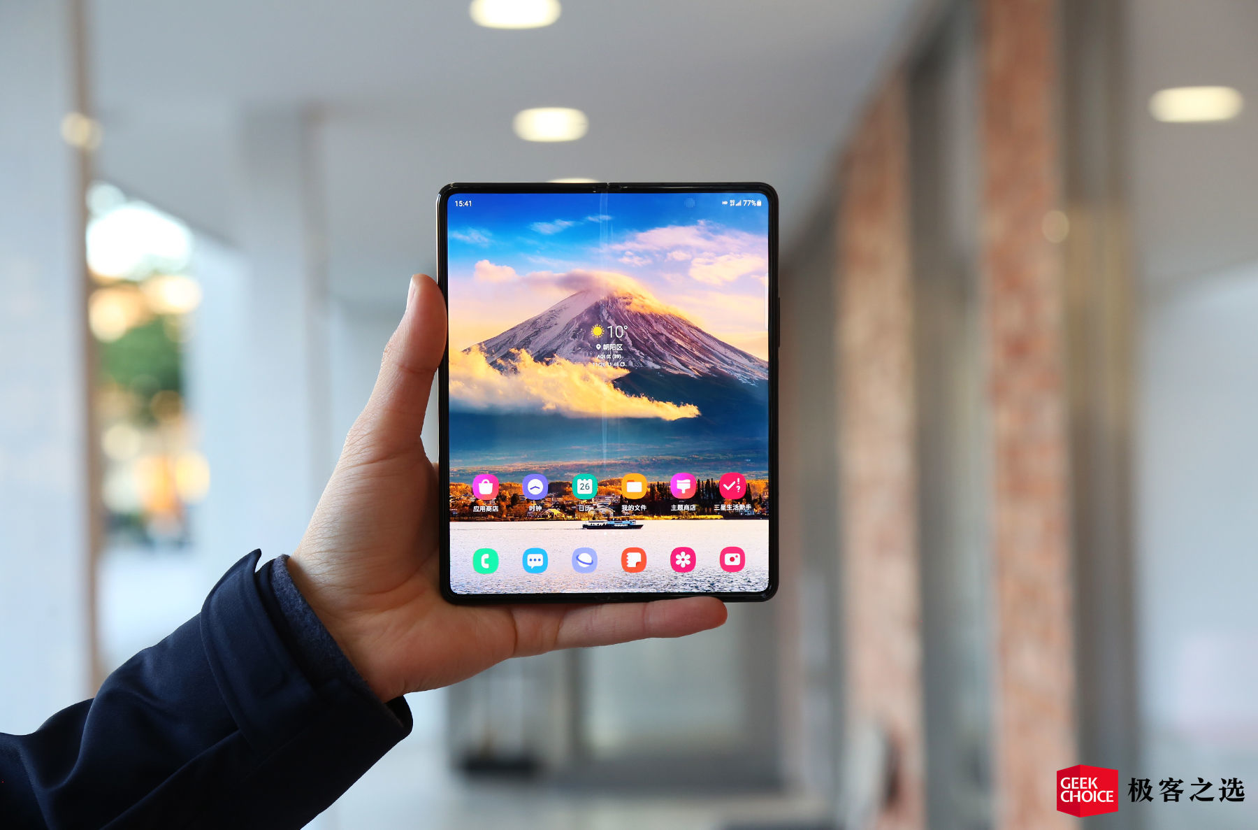 所以无论手机折叠还是展开状态,短时间使用你都不会有坠手的感觉。不过毕竟绝对重量在那里摆着,单手长时间使用的话,它就没有常规直板手机来得轻松了。当然,要是你习惯像使用平板电脑那样双手「捧着」用,无需考虑握感这个问题。