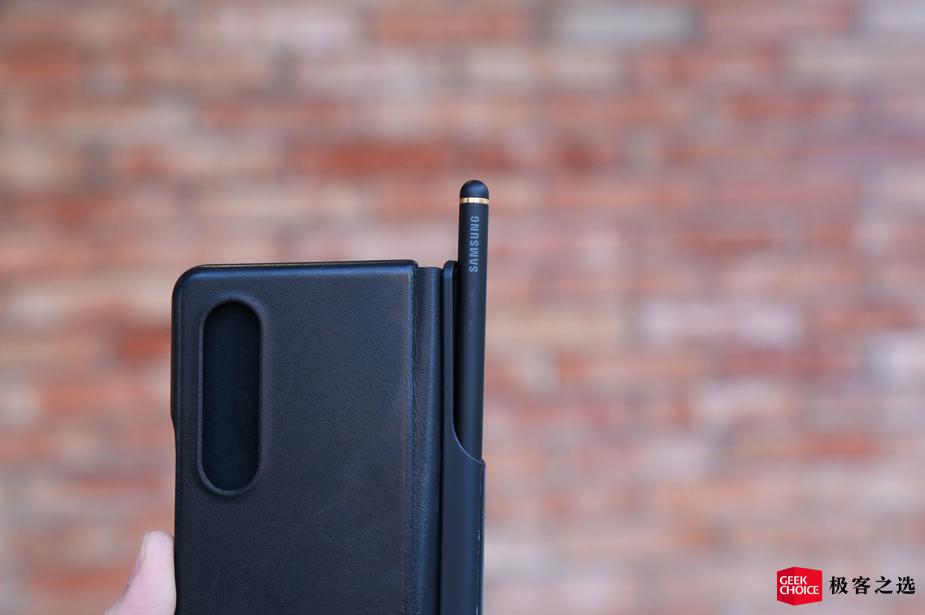 再一次体现尊贵感的地方到了。三星 W22 5G 的 S Pen 为包装内赠,同时包装清单中还有能拆卸的 S Pen Holder 专属皮质保护壳。平时不使用的时候,你可以像图片展示的这样,将笔放到保护壳上,也可以将 S Pen Holder 拆下来单独携带。